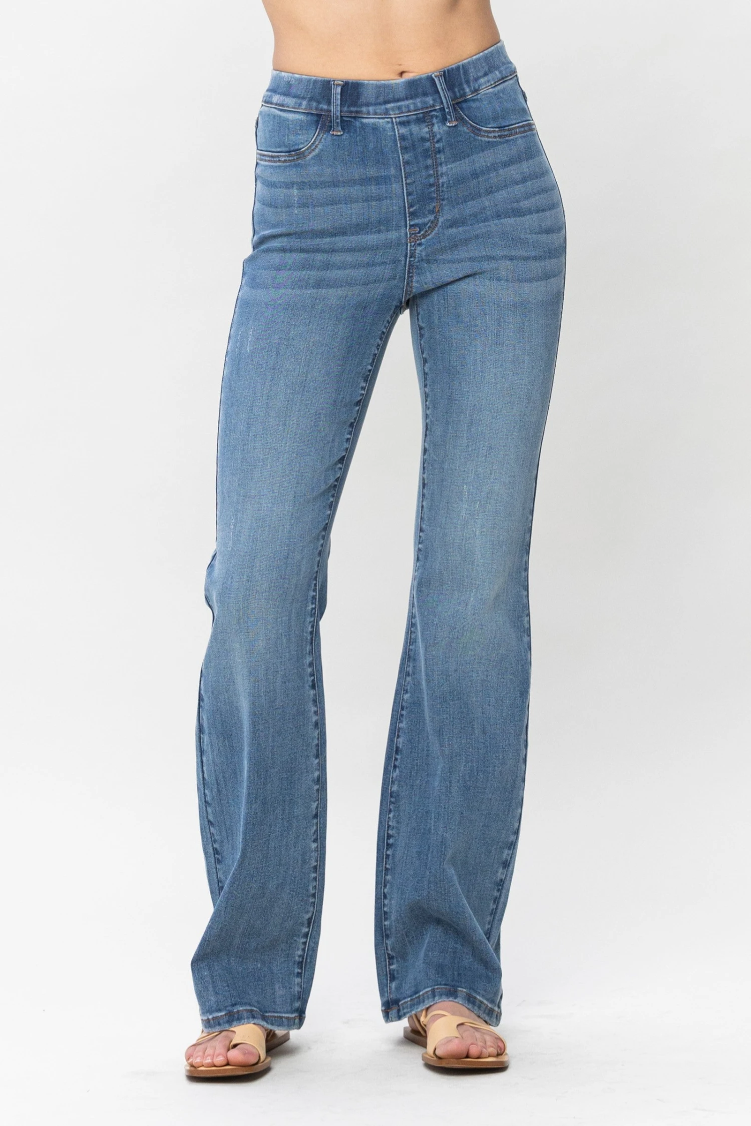 BT-Z {Judy Blue} Pull On Med Blue High Waist Slim Bootcut Jeans PLUS SIZE 14 16 18 20