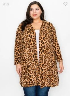 52 OT-X {Staying Strong} Leopard Print Cardigan W/Hood CURVY BRAND!!! EXTENDED PLUS SIZE 3X 4X 5X 6X