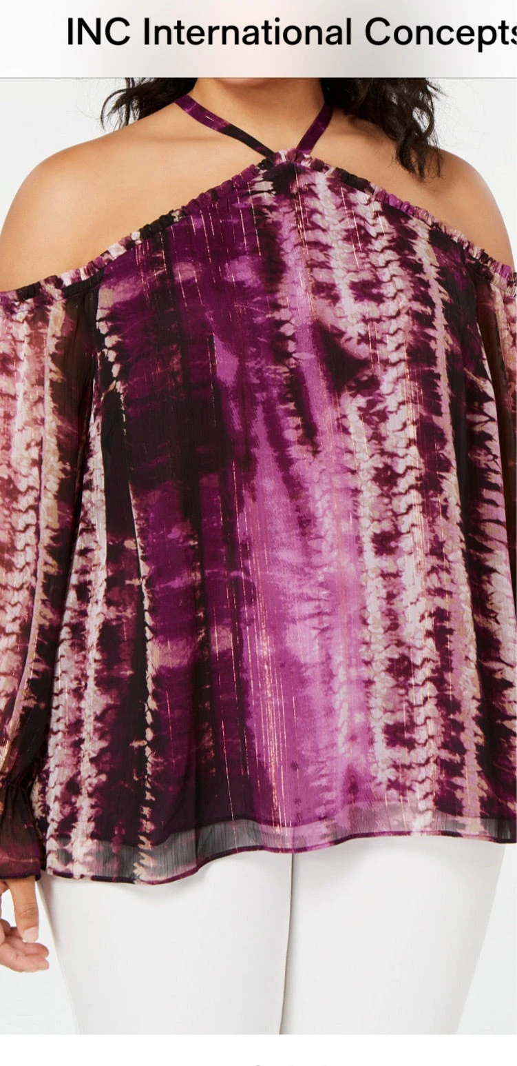 OS-A M-109 {INC} Purple Tie Dye Cold Shoulder Top Retail $79.50 ***FLASH SALE***
