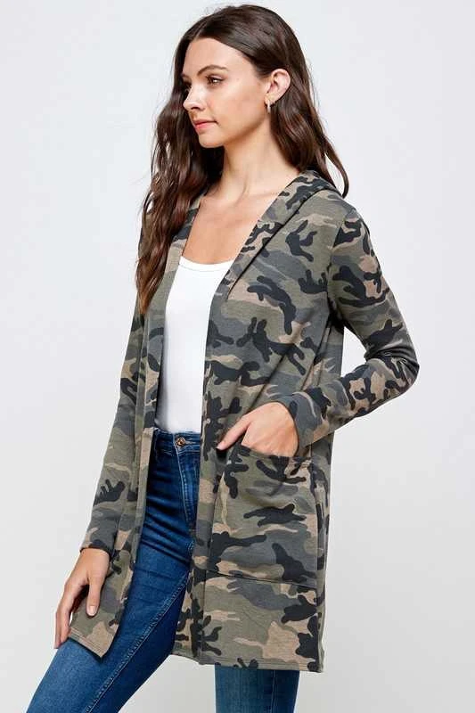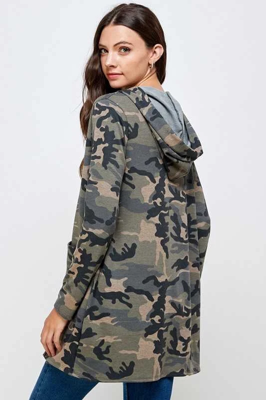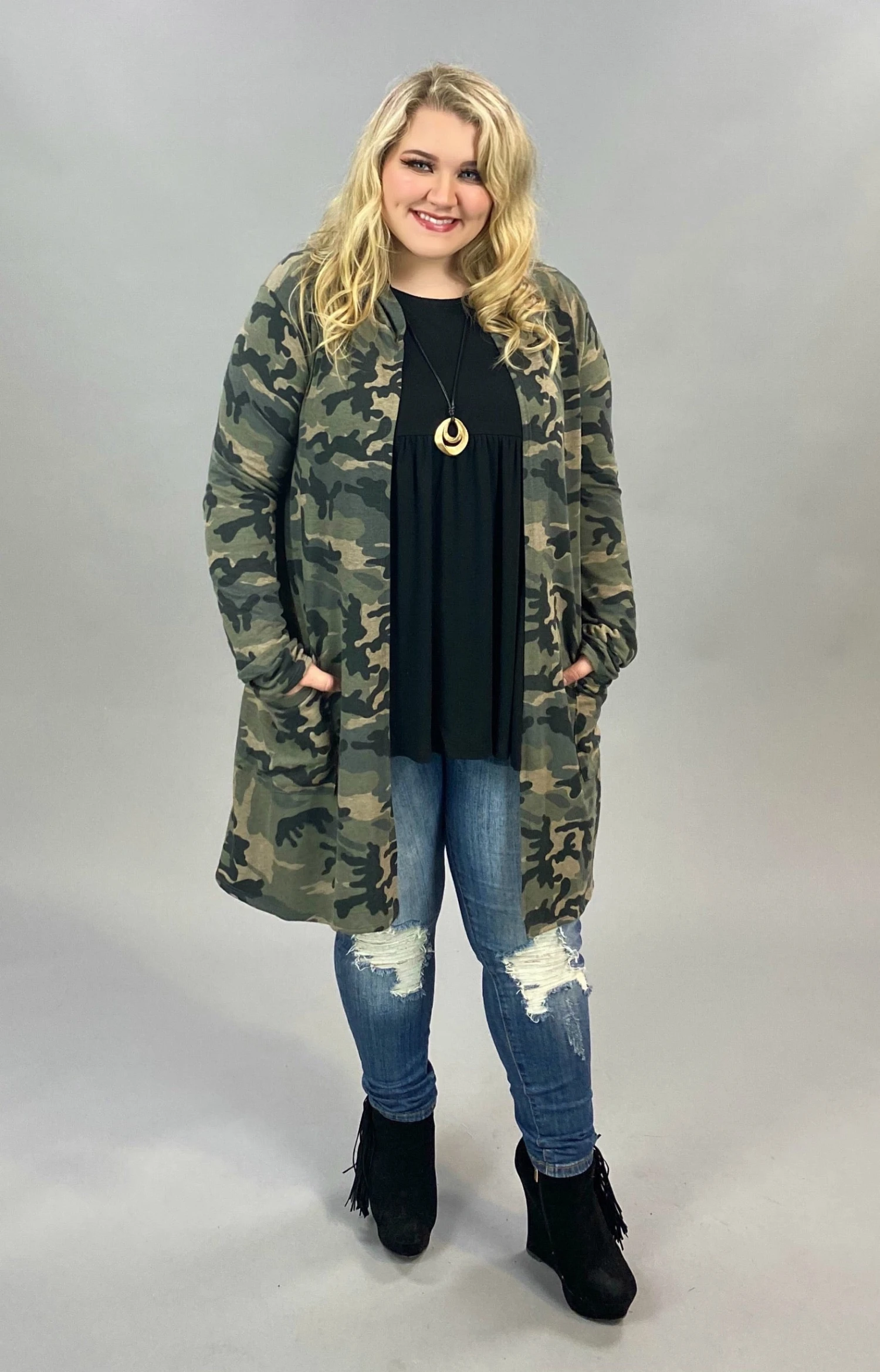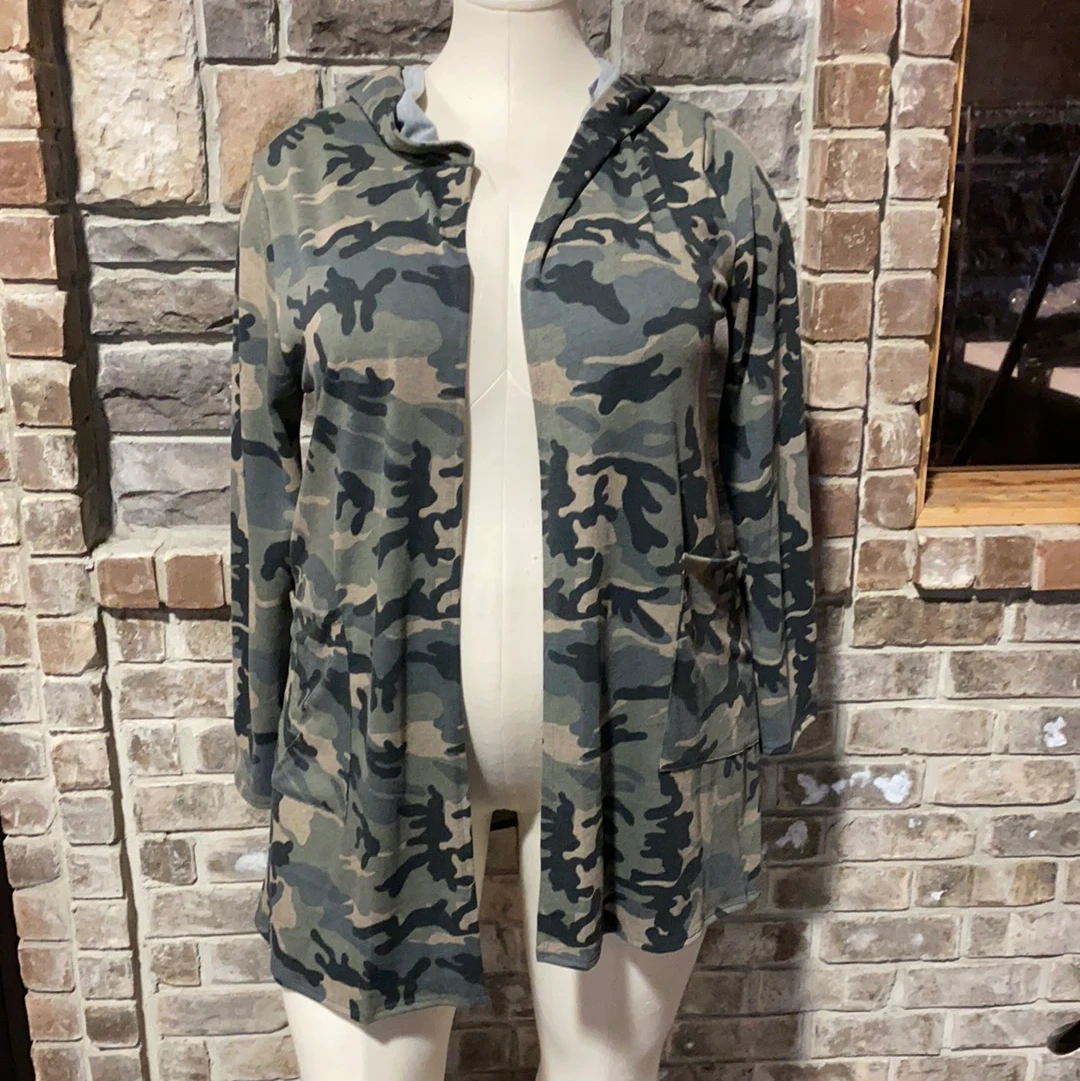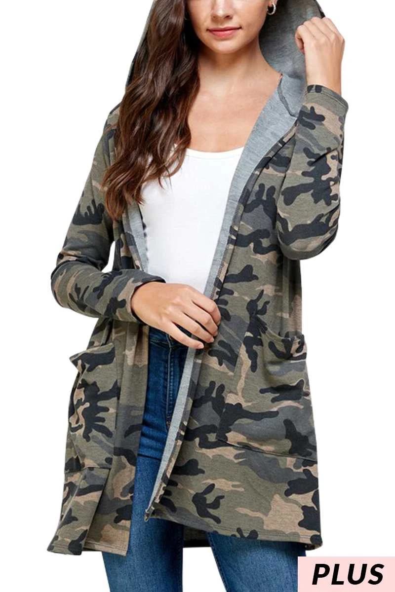 OT-Y {On Your Own} Olive Camo Hooded Cardigan PLUS SIZE XL 2X 3X